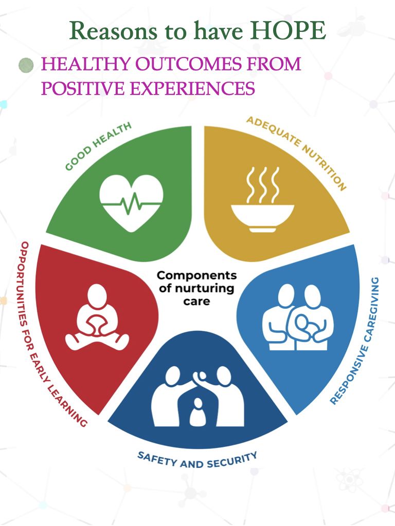 I mentioned this in our last class. H O P E is healthy. In the last several years there have been a lot of great studies that say, yes, we must identify these adverse childhood experiences, we must intervene and create safety nets. However, at the same time, we need to encourage the positive outcomes that can come from positive experiences. Three keys here are to focus on are safety, nurturing, and compassionate caregiving, and I’ll lead you to some resources if you’d like to investigate these things a little bit more.